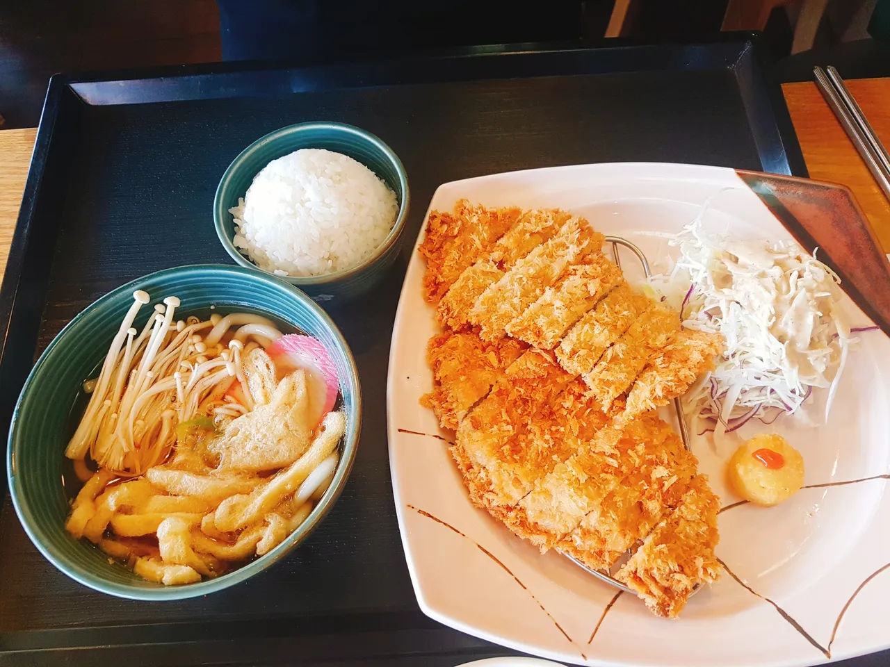 미소야도 초밥이 있지만 여긴 초밥메뉴가 더 많은게 특징이라고 할 수 있을거같아요. 저와 친구는 히레가스 정식과 철판 양념 돈가스를 시켰어요. 초밥도 먹고싶긴했는데 제가 새우초밥밖에 못먹어서 초밥은 스킵했답니다 ㅎㅎㅎ... 히레가스 정식은 안심돈까스로 정식엔 밥과 미니우동이나와요. 미소야에서도 자주 시켜먹던 메뉴였는데 미소야에 비해 코바코가 고기가 더 부드럽더라구요. 그리고 소스가 좀 특이했어요. 좀 더 새콤달콤하니 돈까스가 자칫 느끼할 수 있는데 그런 맛을 잡아주더라구요.